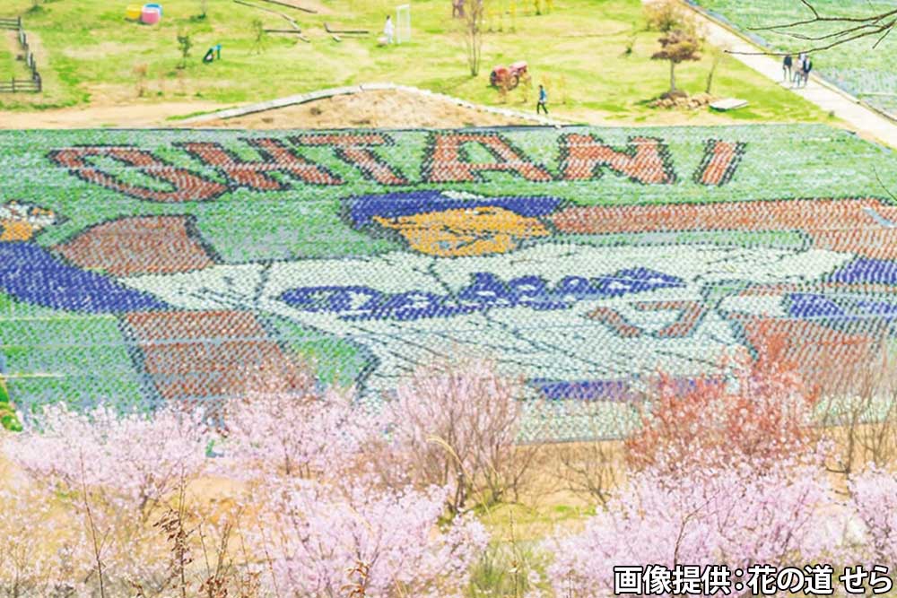 メジャーリーガーをモチーフにした地上絵をはじめ、約20種類もの花々が咲き誇るカラフルガーデンは、まるで“お花の博物館”。